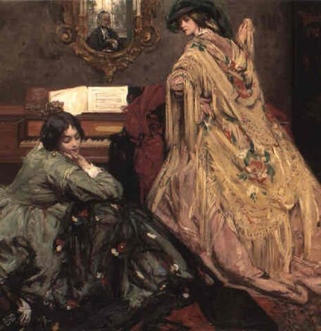 The piece I am most frustrated with is this one, which is probably her most famous work on the internet. The date given with it is 1890 which seems unlikely as her first RA picture was in 1893 and this work is definitely of RA quality, yet I can't find an RA listing that would match it. It also has so many different titles that people don't quite know what exactly it is but countless searches have born no fruit as to its current location or any other information. What gives me hope is that it is in colour, so someone must have it in order to make a good colour picture of it.